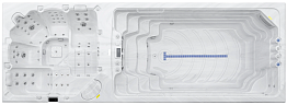 Хорошая модель спа-бассейна для плавания и релакса в гидромассажных сидениях. SpaR оснащен тремя форсунками противотока для комфортного плавания и гидромассажными форсунками для восстановления и отдыха в гидромассажном сидении. Также здесь вдоль плавательной зоны по периметру установлены фонтаны, есть подводная подсветка, удобные ступени и крышка-чехол.